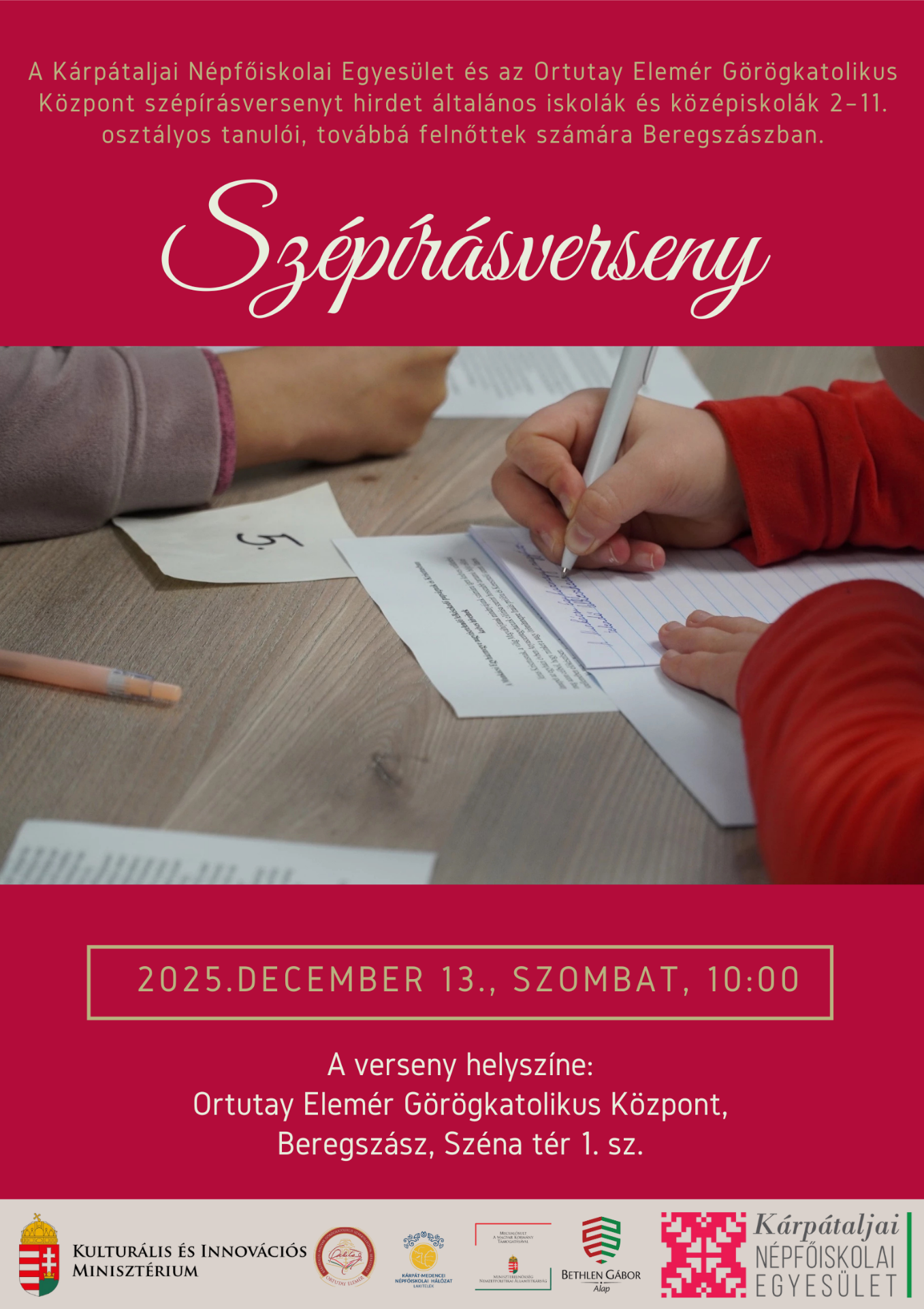 A Kárpátaljai Népfőiskolai Egyesület és az Ortutay Elemér Görögkatolikus Központ szépírásversenyt hirdet általános iskolák és középiskolák 2–11. osztályos tanulói, továbbá felnőttek számára Beregszászban.